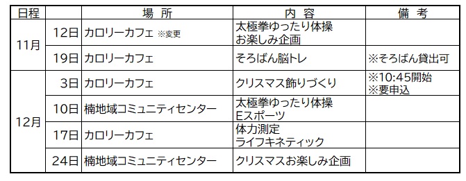 楠校区ふれあいサロンの会場・日程が増えます♪
