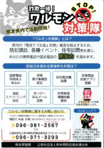 そこで熊本県警が業務委託を受けた熊本県防犯協会連合会の「ワルモン対策隊」が、防犯対策の紹介や登録・手続きをサポートします。